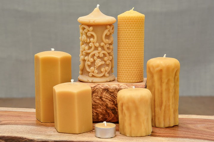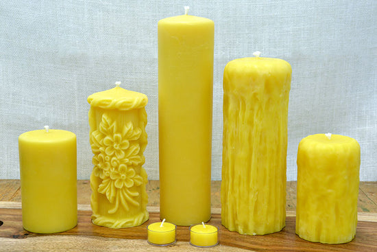100% Pure Beeswax Candles- Beeswax Tea Light and Votive candles - Beeswax Pillar candles (plain and stylized pillars) - Beeswax Taper candles - Beeswax Sculptured candles Beeswax candles are sometimes referred to as “Honey Candles”